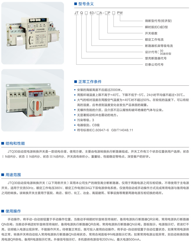 JTQ30双电源自动转换开关