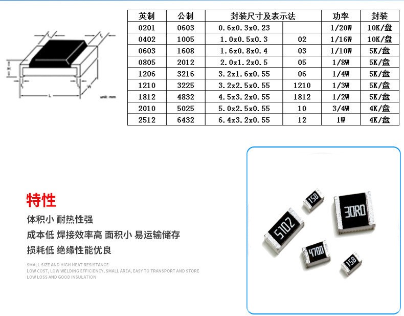 片式固定电阻器,从Chip Fixed Resistor直接翻译过来的,俗称贴片电阻(SMD Resistor) ,是金属玻璃釉电阻器中的一种。是将金属粉和玻璃釉粉混合,采用丝网印刷法印在基板上制成的电阻器。耐潮湿和高温, 温度系数小。可大大节约电路空间成本,使设计更精细化。
